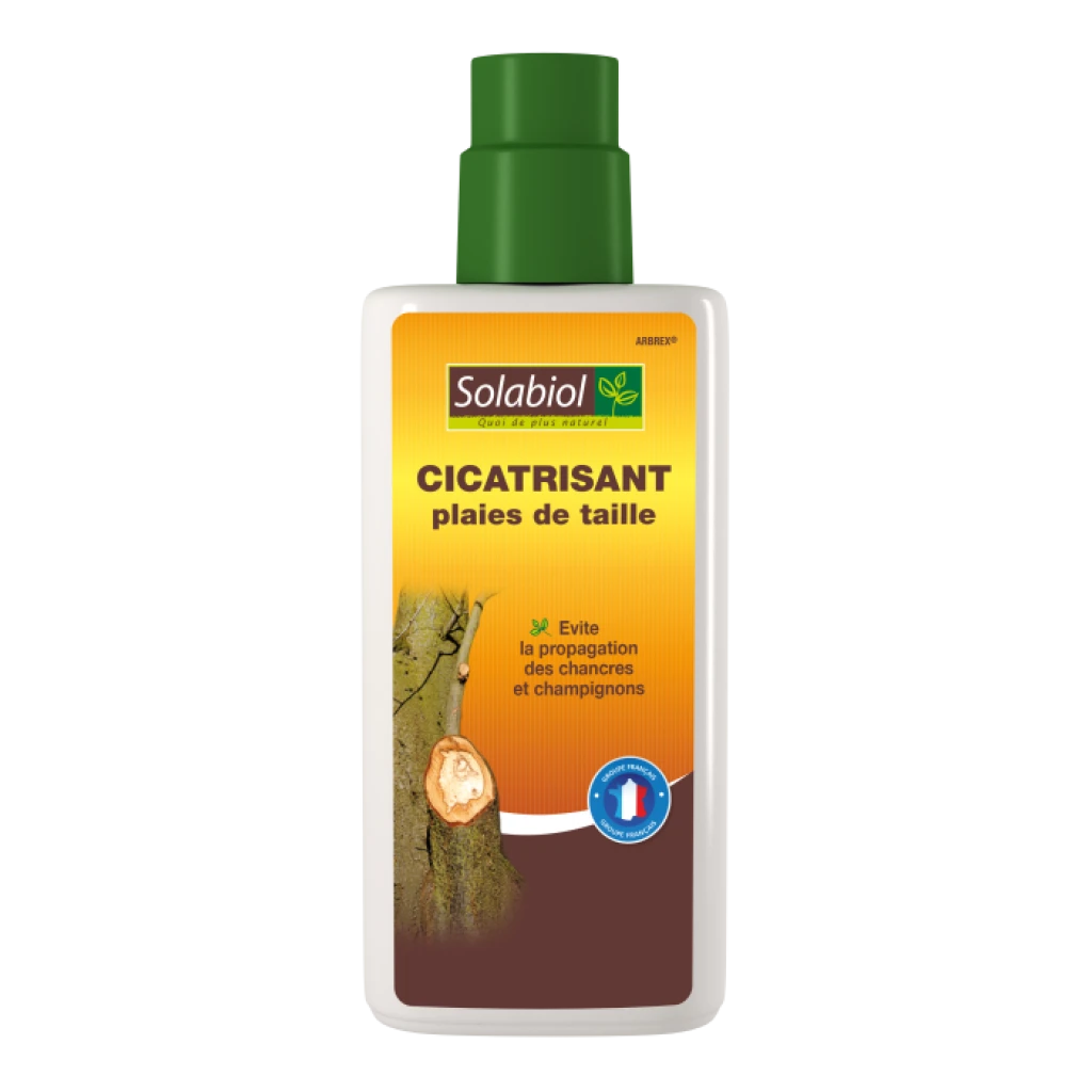 Ce cicatrisant pour plaies de taille Solabiol est utilisable en Agriculture Biologique, au jardin d’ornement. Il s’agit d’une pâte imperméable et de texture fluide de couleur sombre, composée d’un mélange de résines et d’huiles végétales. Il facilite la cicatrisation des plaies et sa durée d’efficacité, par un effet « barrière », est de plusieurs semaines suivant l’épaisseur appliquée, la qualité du support et la quantité appliquée. Il est conseillé de l’appliquer sur un tronc parfaitement propre et sec, et de cureter et de nettoyer soigneusement les plaies avant d’appliquer ce soin.