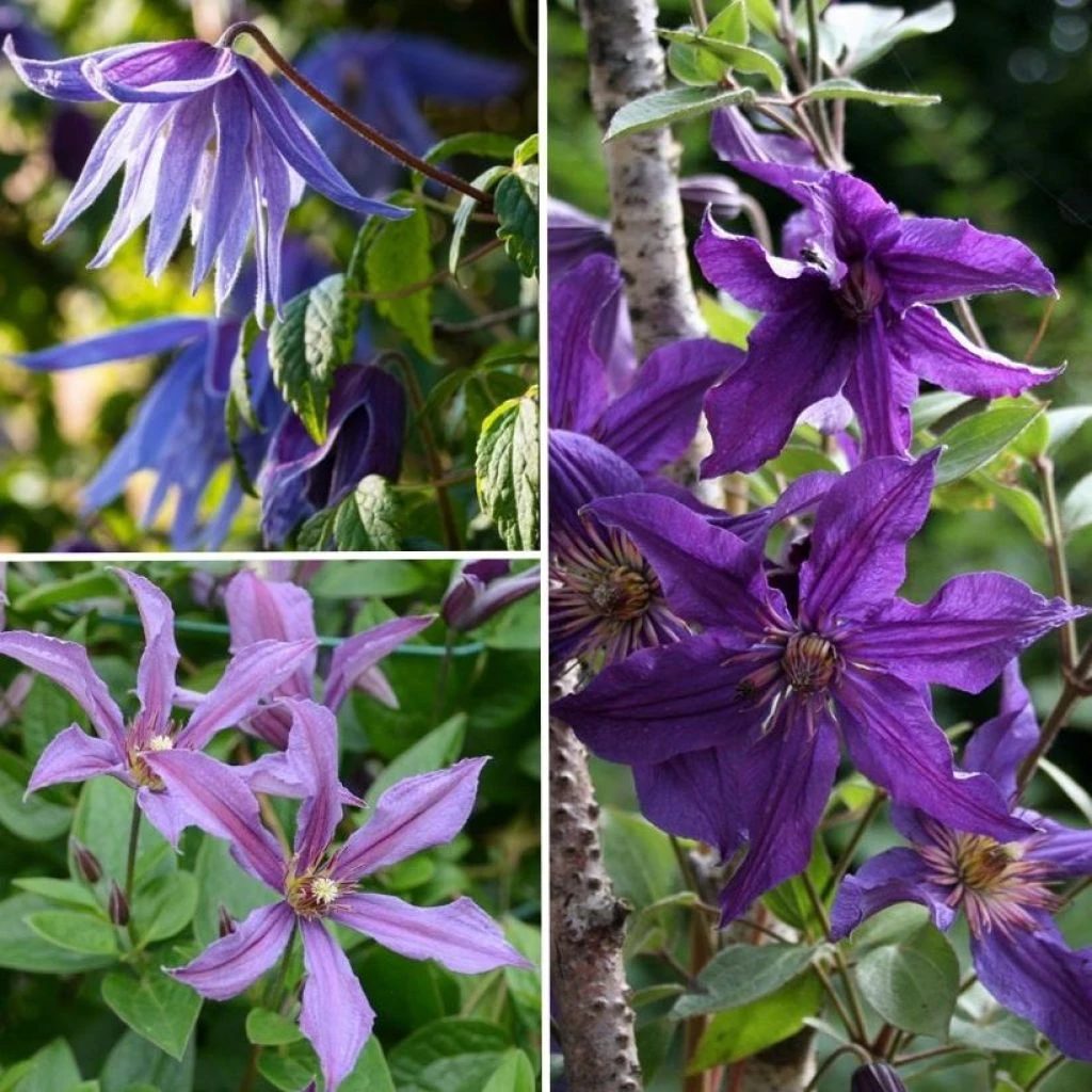 Le genre Clematis appartient à la famille des renonculacées. Les appartiennent à la famille des renonculacées. On les trouve dans les deux hémisphères, notamment en Europe, dans l’Himalaya, en Chine, en Australie, en Amérique du Nord et centrale. Les trois variétés qui composent cette collection sont des plantes parfaitement vivaces et rustiques. Leur feuillage est caduc, il se forme au printemps et tombe en automne. Ces plantes s’accrochent au support ou aux plantes voisines par le biais de pétioles transformés en vrilles. Elles fleurissent sur les nouvelles pousses.