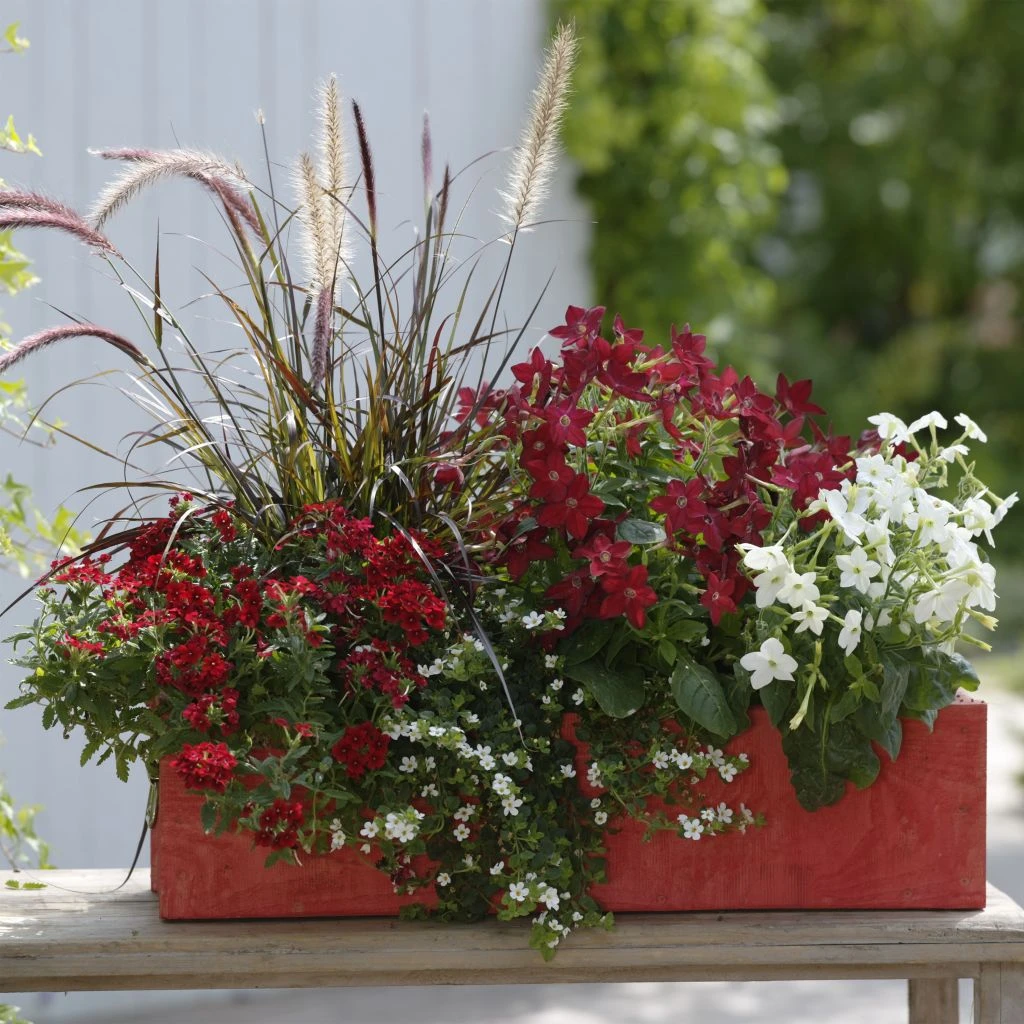 Collection de 5 variétés d’annuelles en mini-mottes assorties dont une graminée pour des jardinières et suspensions « clé-en-main » qui fleuriront tout l’été durant vos balcons, terrasses et appuis de fenêtre au soleil. Facile à réussir et à entretenir !