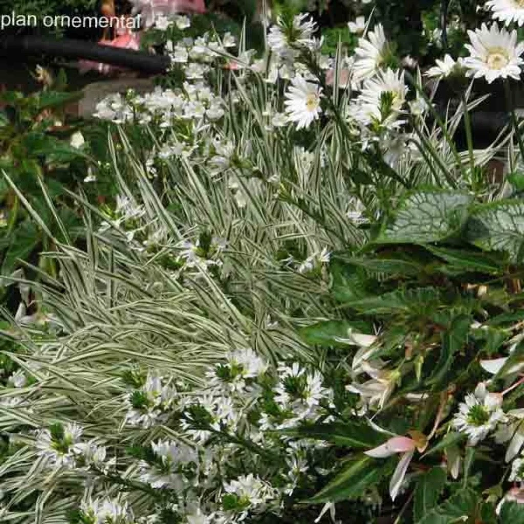 Bracteantha Heliana White :  annuelle florifĂ©re, sa floraison dure 5 mois . Thymus Sparkling Bright :  son feuillage panachĂ© particulièrement lumineux. Nemesia Sunpeddle White Perfume : annuelle, excellente pour la composition de bacs et jardinières, donnant aussi un bel effet dans de grosses potĂ©es isolĂ©es. Le BĂ©gonia Gumdrop Coco White offre une floraison tout en contraste d’un blanc pur sur un feuillage très foncĂ©