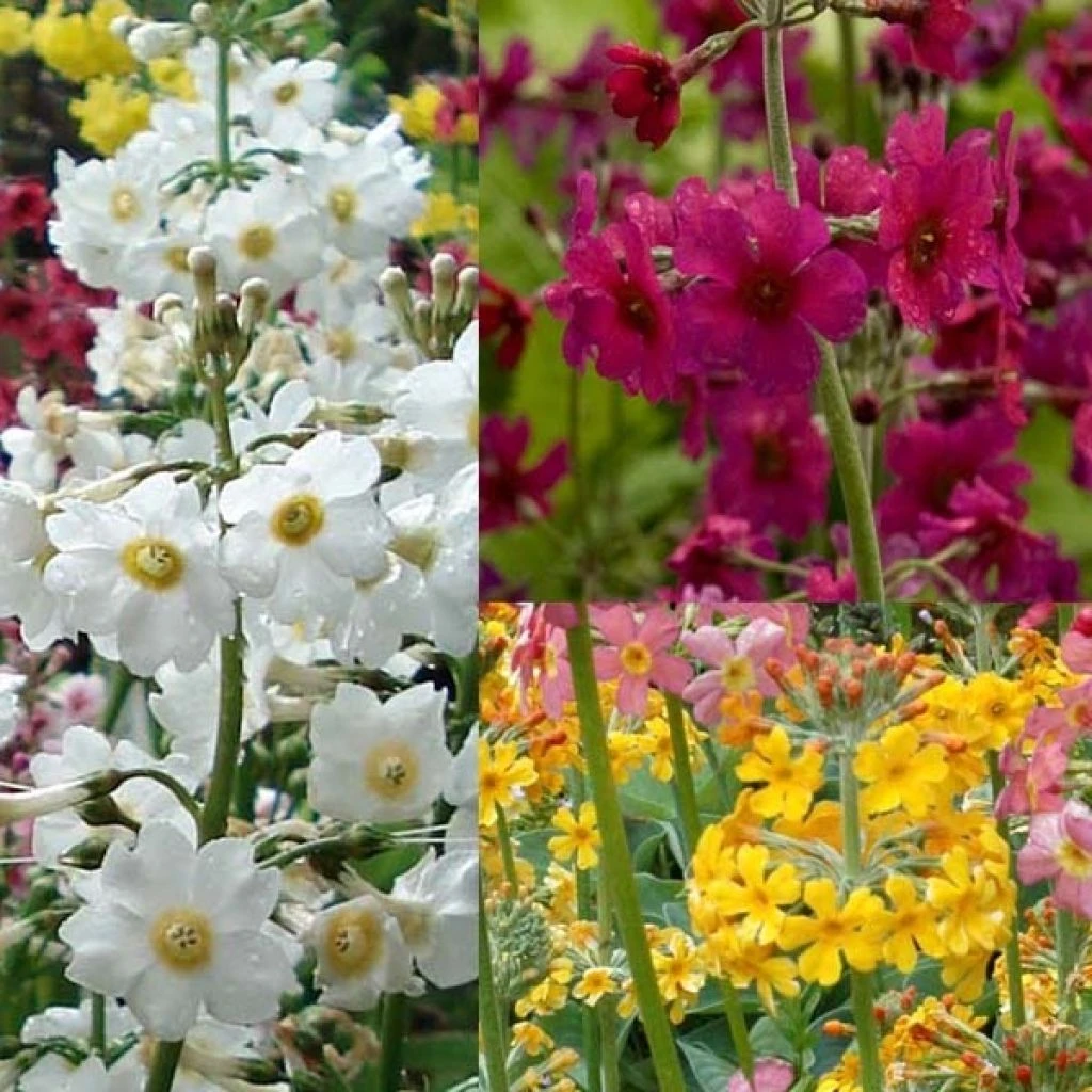 Primevères « Candélabres » : Redécouvrez ces jolies primevères étagées qui apportent aux massifs hauteur et légéreté. Sur leur feuillage d’environ 20 cm se détache une tige de 60cm. D’un port très original avec leurs fleurs regroupées par étage.
