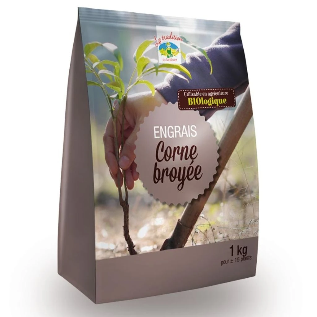 La corne broyée est un engrais de fond adaptée à toutes les cultures. D’un emploi très simple, elle s’utilise à la plantation, lors de la préparation du sol en automne pour le potager ou lors de la création d’un massif, d’une pelouse, ou au moment du rempotage des plantes cultivées en bacs ou en pots. En entretien, la corne broyée sera épandue puis incorporée à la terre par griffage, au pied des arbres et arbustes. Un simple épandage sur le gazon suffit. La corne broyée, mélangée à la terre de plantation, ne présente aucun risque de brûlure pour les racines des plantes. Evitez cependant le surdosage pour ne pas favoriser la production de feuilles et de tiges au détriment de la floraison et de la fructification.