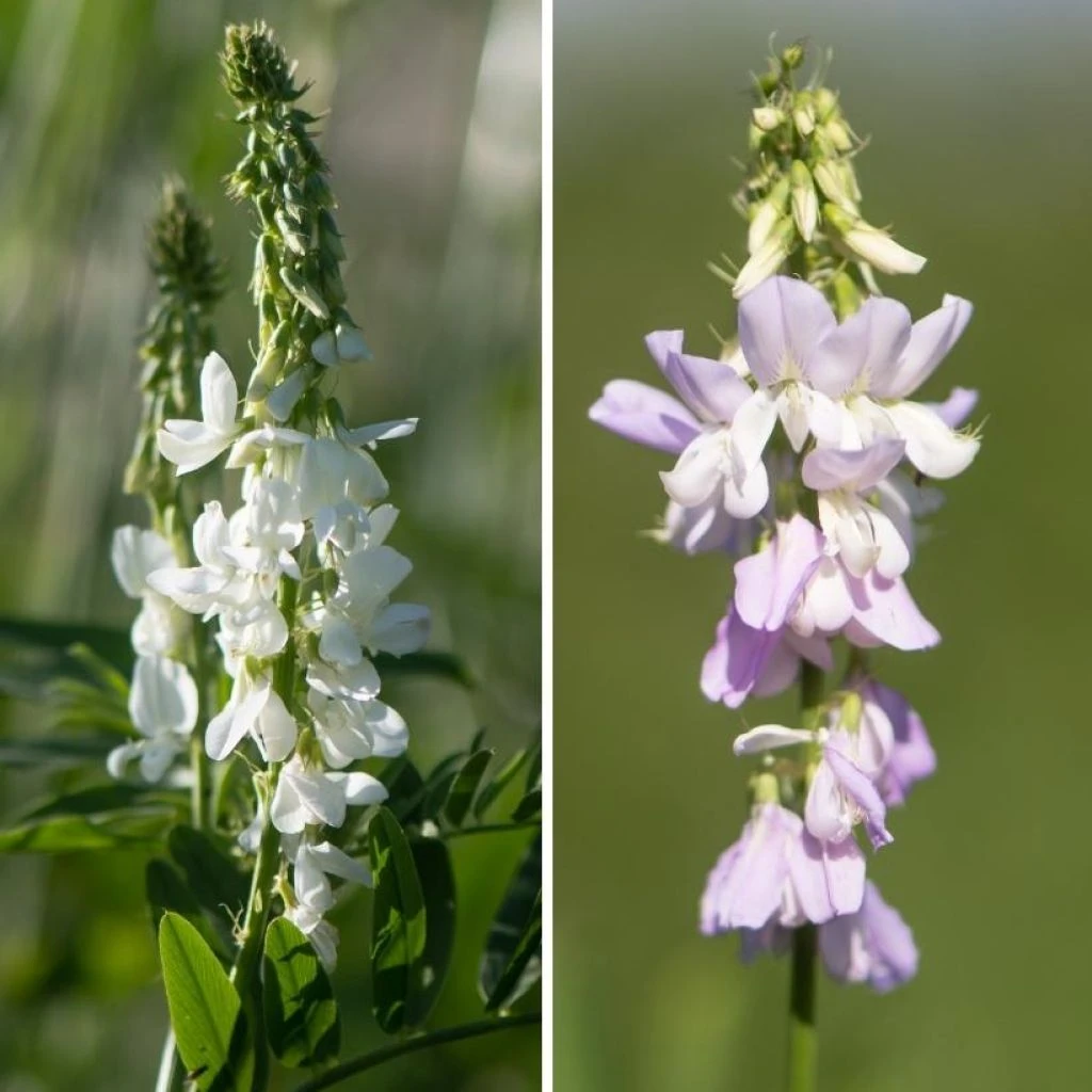 Les Galega de ce Duo sont des vivaces intĂ©ressantes pour leur croissance trĂšs rapide et leur belle vigueur. Elles forment en l’espace de 2-3 ans de grandes touffes buissonnantes aux tiges solides, ne nĂ©cessitant pas de tuteurage. Leur feuillage, absent en hiver, est composĂ© de feuilles pennĂ©es dâun beau vert clair et frais. Elles fleurissent en grandes grappes dressĂ©es de fleurs papilionacĂ©es parfumĂ©es. Ce sont des plantes extrĂȘmement rustiques et de culture trĂšs facile dans toute bonne terre de jardin fraĂźche, au soleil. Vous les utiliserez pour agrĂ©menter et animer un massif ou une plate-bande, installĂ©es en arriĂšre-plan. NĂ©cessitant de la place, il conviendra de leur laisser un espace de 50-60 cm pour quâelles puissent sâĂ©panouir sans pour autant empiĂ©ter sur les plantes voisines.
