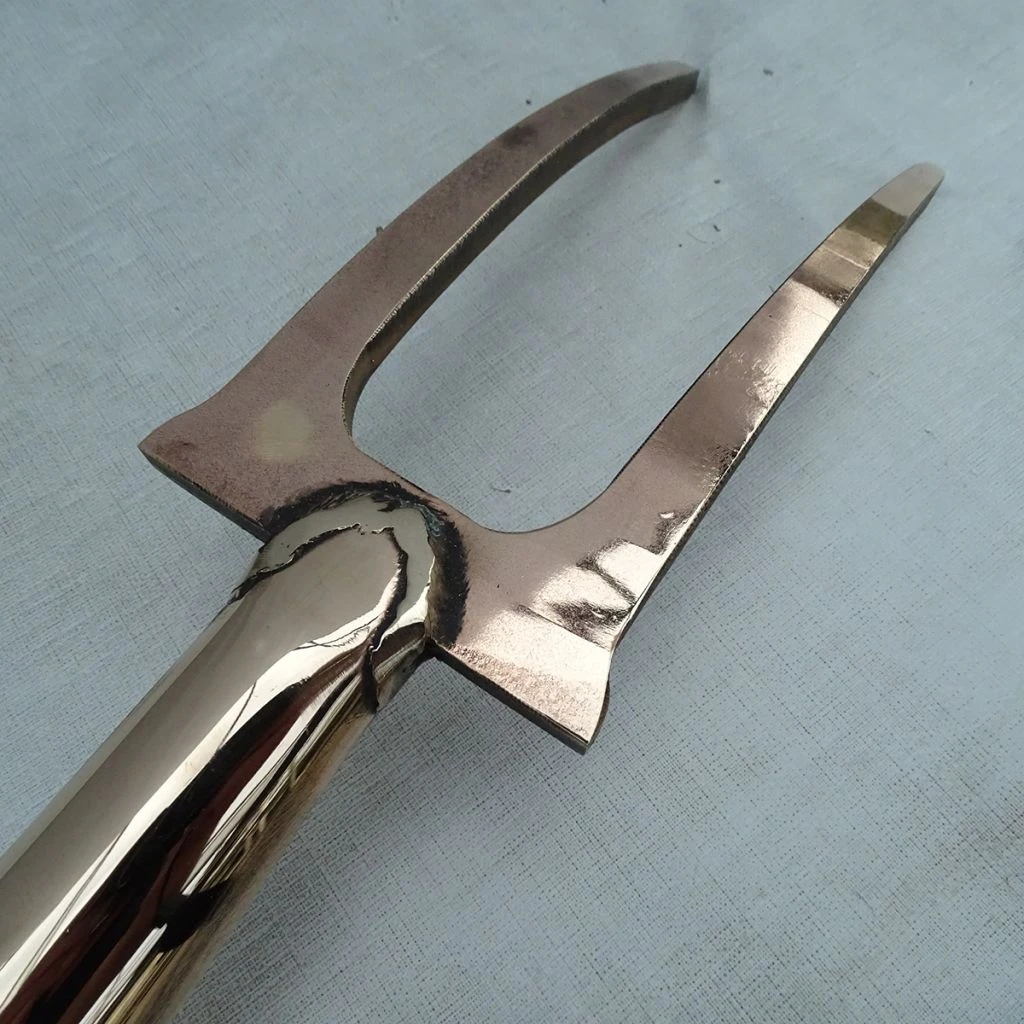 Pour conserver le bel aspect de votre outil en cuivre, nous vous conseillons de le nettoyer avec une brosse dure après chaque usage, de le stocker à l’abri de l’humidité et une fois par an de passer le manche au papier de verre fin puis de l’huiler avec un mélange d’huile de lin et de térébenthine qui permet une application plus facile. Vous pouvez diluer moitié moitié et pour un séchage plus rapide du manche utiliser l’huile de lin cuite.