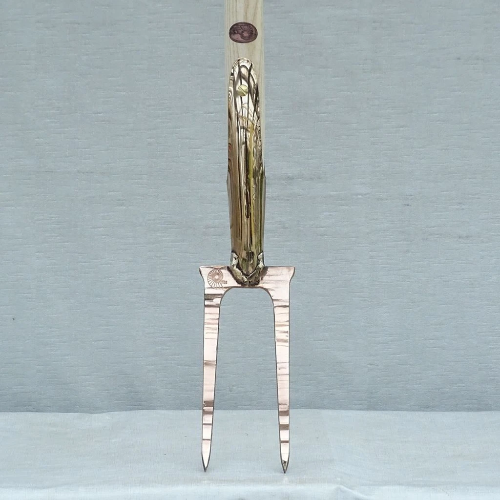 Cette fourche à rosier traditionnelle en cuivre modèle Syrma de la gamme PKS Bronze, marque homonyme du célèbre écologiste et naturaliste autrichien permet de travailler la terre dans les massifs d’arbustes, arbres et plantes grimpantes, même s’ils sont plantés serrés. Son manche ergonomique terminé par une poignée en T permet une bonne prise en main. Sa fourche en bronze, qui dépose à l’usage de micro particules de cuivre dans la terre, contribue à l’amender avec ce constituant naturel du sol. Durable, maniable et résistant, c’est un outil de bonne facture qui accompagnera le jardinier durant de nombreuses années.