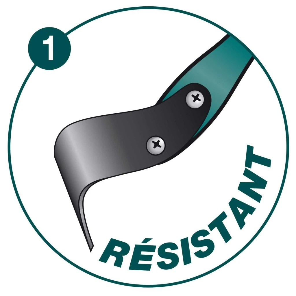 Le grattoir est un outil conçu pour dĂ©sherber le potager ou le jardin d’ornement sans avoir recours Ă l’utilisation de produits chimiques. Il permet de sarcler, c’est Ă dire à enlever les herbes de façon manuelle et mĂ©canique, en raclant le sol de façon superficielle, sans le retourner. La tĂȘte de ce modĂšle NaturOvert, large de 16 cm, permet deux usages : le cĂŽtĂ© lame large coupe net sous le collet des jeunes herbes indĂ©sirables Ă la surface du sol, tandis que le cotĂ© lame Ă©troite tranche les plantes coriaces (pissenlits, rumex, plantain, plantes Ă racine pivotante) et permet de rassembler les herbes coupĂ©es. Elle est fabriquĂ©e en acier trempĂ© forte teneur en carbone (38-42 HRC) dâĂ©paisseur 1 mm, trĂšs rĂ©sistant aux chocs et Ă la torsion. La douille conique se fixe Ă l’aide de vis, ce qui permet de changer facilement le manche si nĂ©cessaire. Cet outil se faufile facilement sous les plantes, y compris lorsque leur vĂ©gĂ©tation est abondante. Le manche en bois, long de 150 cm, est terminĂ© en « pomme » et percĂ© Ă son extrĂ©mitĂ© pour facilitĂ© le rangement de l’outil. Le manche est compostable, la tĂȘte mĂ©tallique est recyclable. Ce produit, assemblĂ© en France, est garanti 15 ans par le fabriquant.