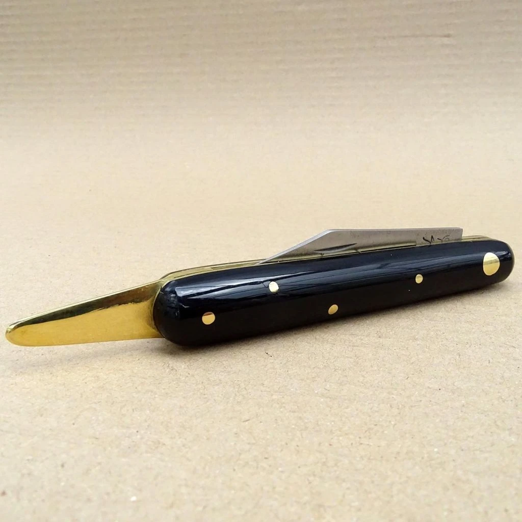 Le greffoir pour fruitiers est un couteau à greffer droit, muni d’une lame en acier de 5 cm sertie d’un manche en ébonite. Il particulièrement adapté pour le greffage en écusson grâce à sa lame courte et pointue qui permet de travailler avec précision sur le support. Il est également adapté pour d’autres techniques de greffage telles que la greffe en anglaise, en biseau, en oméga ou en fente. La greffe site en écusson se pratique principalement sur les arbustes fruitiers, la vigne ainsi que sur les rosiers car leur moëlle est souvent fragile et supporte mal les greffages en fente. C’est une technique particulièrement conseillée sur les arbres fruitiers à noyau!