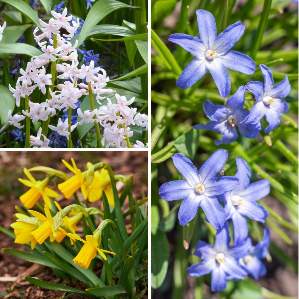 Nous vous proposons cette Inspiration petits bulbes de printemps à floraison contrastée, une sélection qui se compose de 38 bulbes au total. Les petites trompettes jaune citron parfumées du narcisse ouvrent le bal, suivies de près par les épis de fleurs bleues retouchées de blanc du Chionodoxa et ceux de la jacinthe multiflore, bien parfumés. Les floraisons s’échelonneront de fin février à fin avril, début mai, selon le climat. Du jaune, du bleu et du rose pour accueillir le printemps en fanfare !