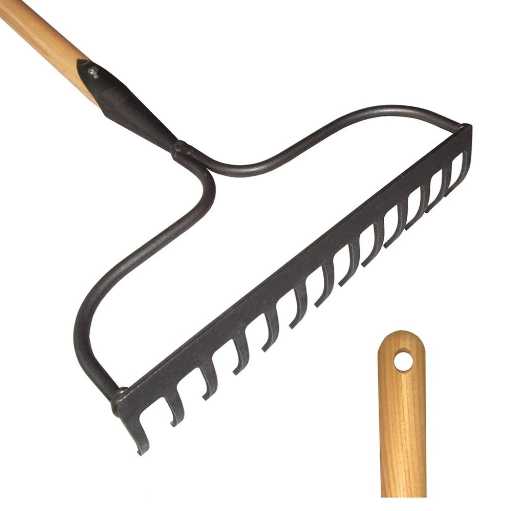 Ce râteau-étrier traditionnel De Pypere, équipé d’un solide manche en frêne, est un outil particulièrement robuste en raison du support fixé aux niveau des deux côtés de sa tête. Muni de 13 dents. doté d’une belle largeur de travail, cet outil à main est idéal pour égaliser, affiner et aplanir la terre ou encore ramasser des feuilles. Très bien fini, polyvalent et d’une grande solidité, il accompagnera le jardinier durant de nombreuses années. Sa lame est forgée à la main en acier, avec une finition en acier au bore.