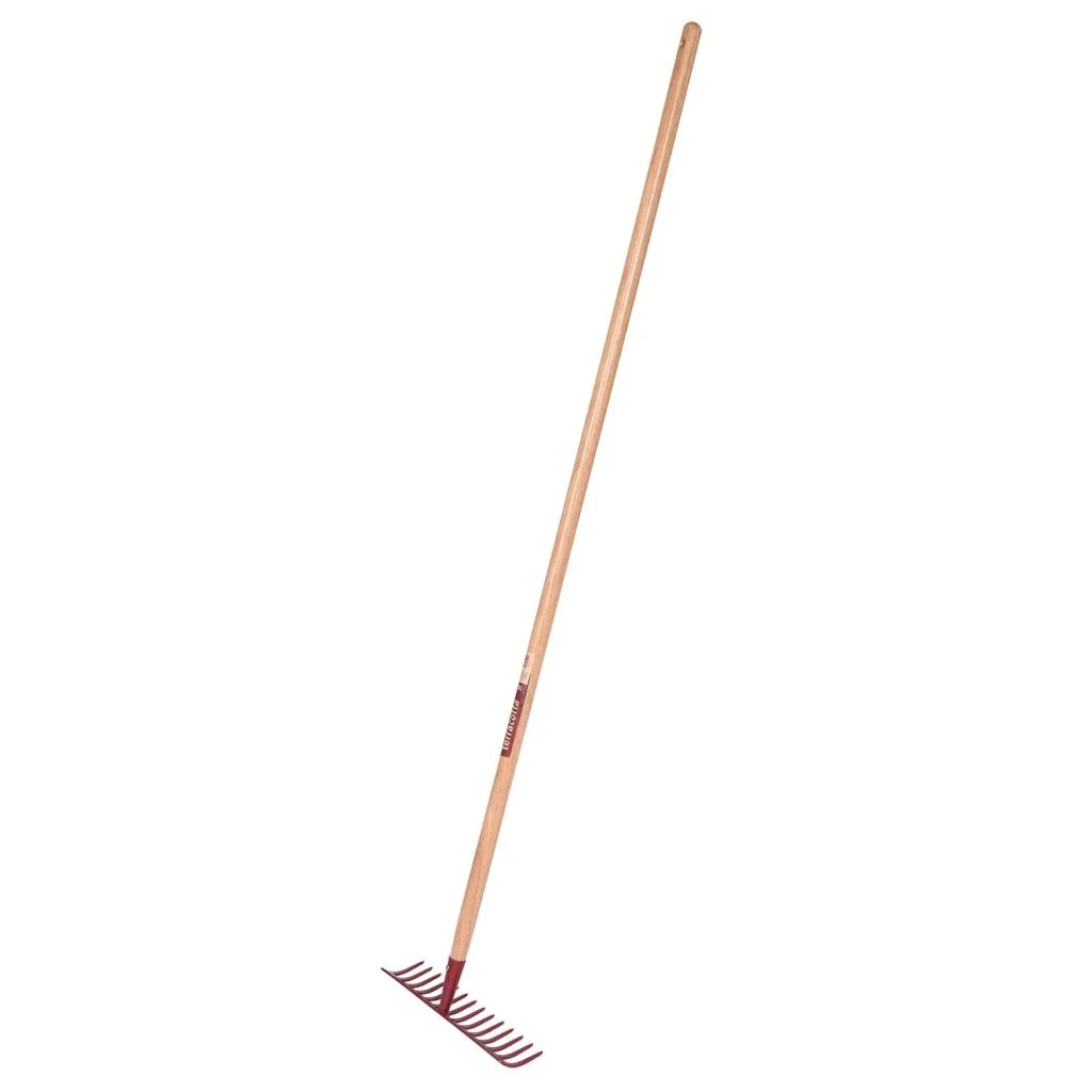 Le râteau classique à dents courbes est utilisé pour aplanir les allées gravillonnées. rassembler les feuilles, les coupes de gazon et les petites brindilles, affiner et égaliser la surface d’une terre fraîchement bêchée ou sarclée. Il s’emploie couramment pour reboucher les sillons et tasser légèrement la terre après les semis à l’aide du dos de la tête. Cet outil de jardin peut également servir à scarifier la pelouse, c’est à dire pour gratter et aérer l’herbe tout en enlevant les mousses.