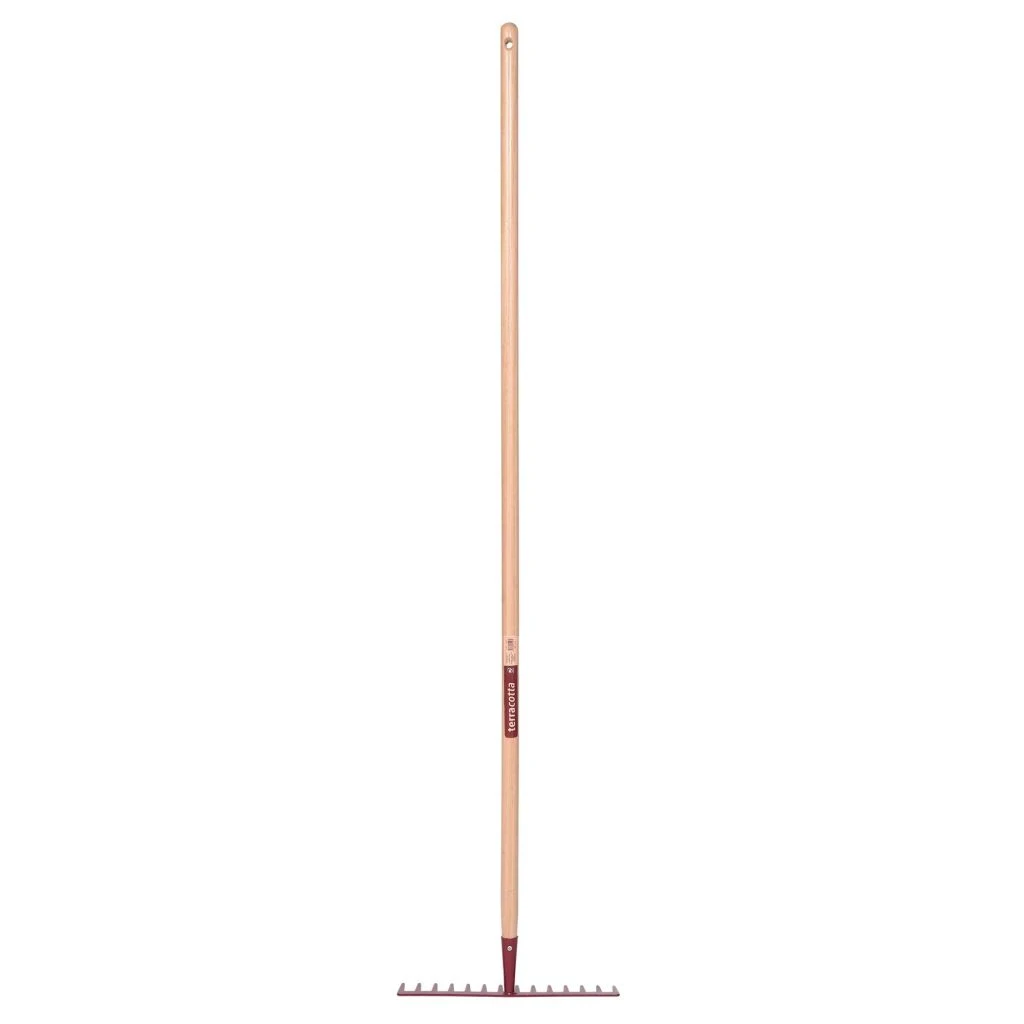 Ce râteau classique 14 dents droites Terracotta de Leborgne est un outil robuste et efficace, qui accompagnera le jardinier durant de nombreuses années. Ce modèle met l’accent sur la solidité, avec une tête forgée en acier et une douille d’emmanchage en acier soudé. Il n’oublie pas l’ergonomie, avec un très long manche en bois d’eucalyptus qui préserve le dos. Doté d’une large capacité de ramassage, ce râteau travaille vite et bien. Idéal pour niveler le sol et casser les mottes de terre, il sera également très utile pour étaler du gravier, ramasser tous les débris dispersés sur le sol comme des tontes de gazon, des feuilles mortes et divers déchets.