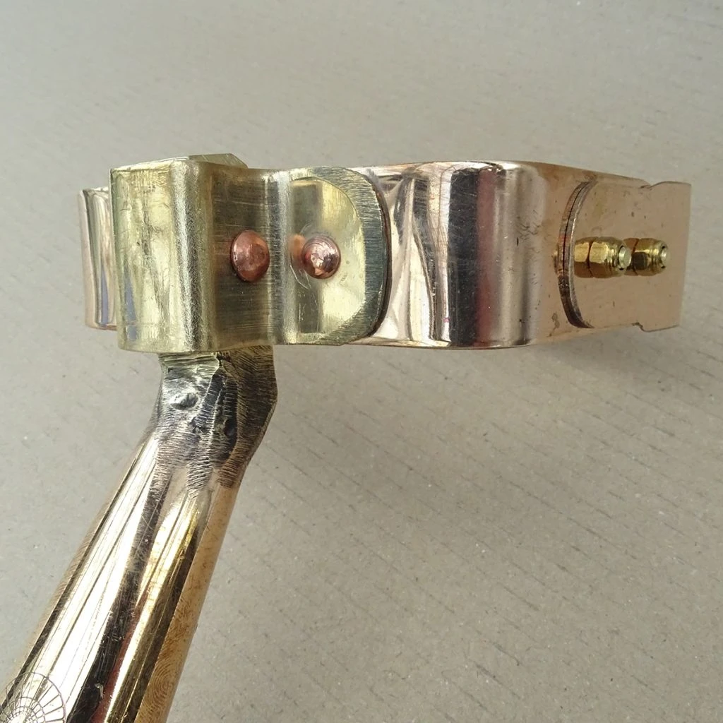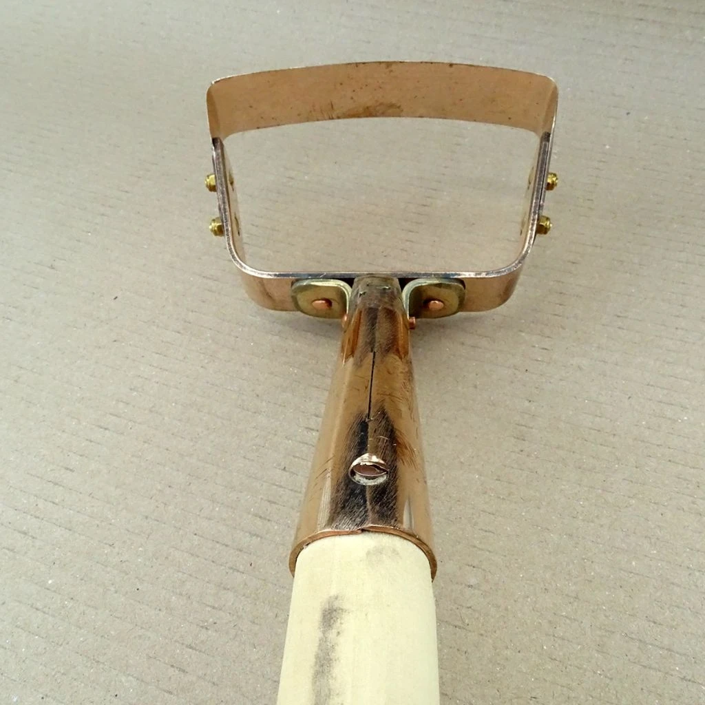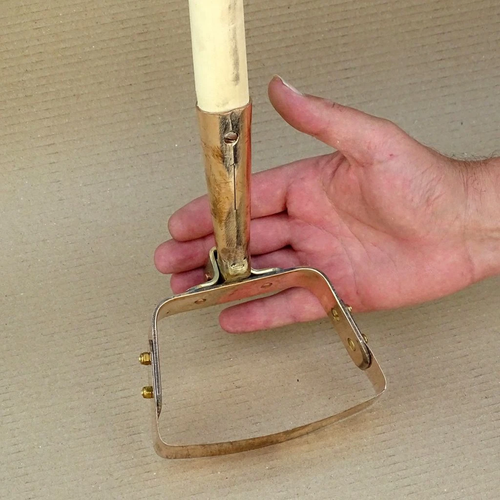 Pour conserver le bel aspect de votre outil en cuivre, nous vous conseillons de le nettoyer avec une brosse dure après chaque usage, de le stocker à l’abri de l’humidité et une fois par an de passer le manche au papier de verre fin puis de l’huiler avec un mélange d’huile de lin et de térébenthine qui permet une application plus facile. Vous pouvez diluer moitié moitié et pour un séchage plus rapide du manche utiliser l’huile de lin cuite.