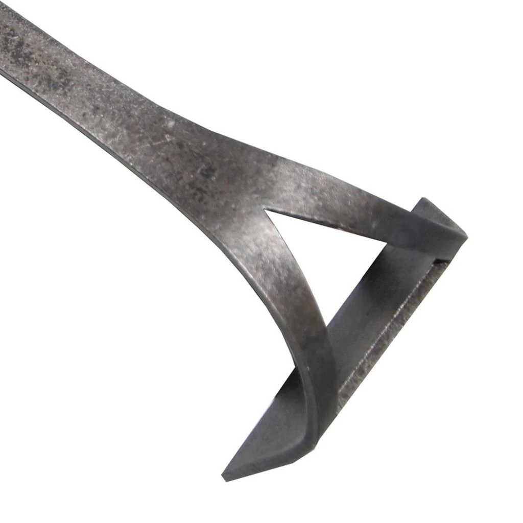 Cette serfouette se faufile autour des plantes qui sont trop rapprochées pour que l’on puisse y faire passer la binette, plus large.